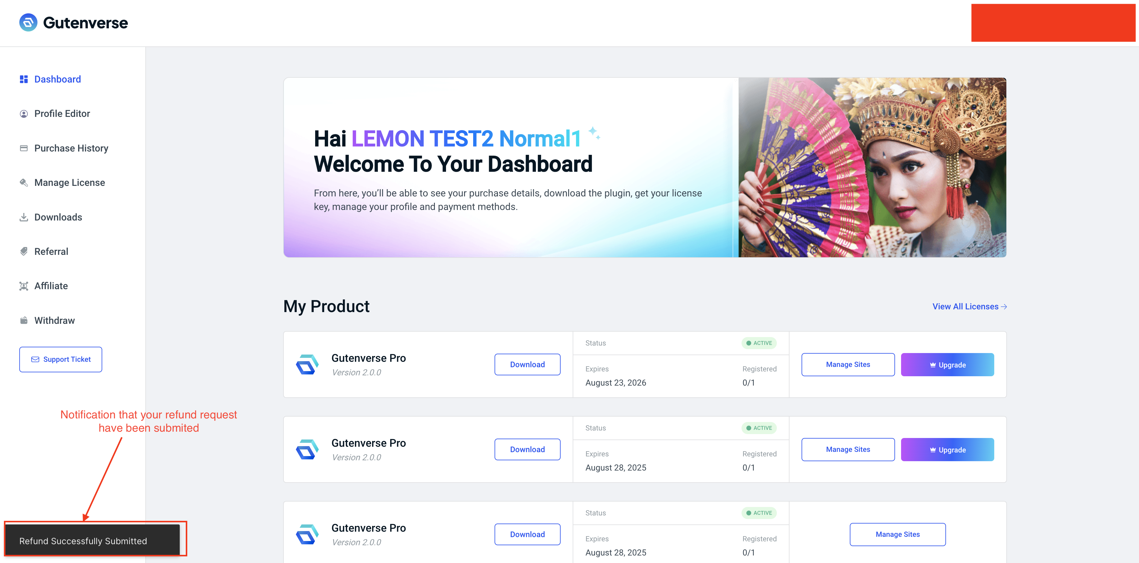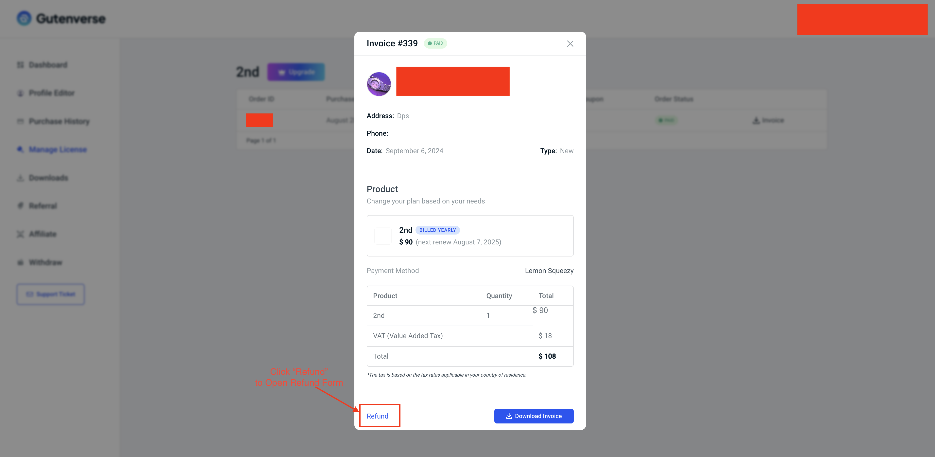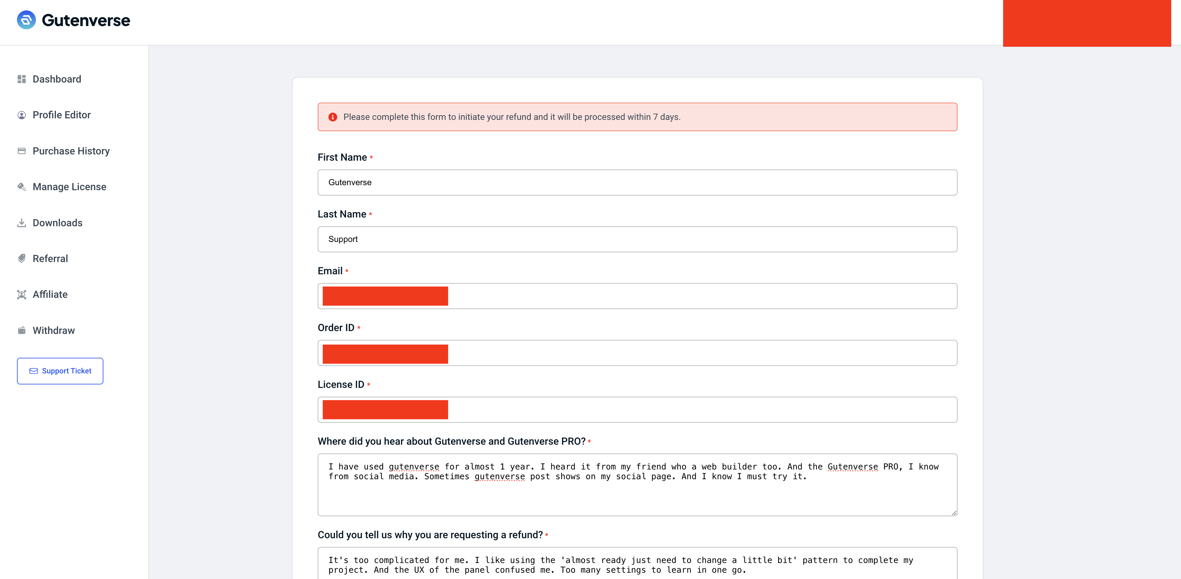 4. By requesting a refund, you are effectively canceling the subscription of the associated license, which will result in losing access to Gutenverse PRO features.