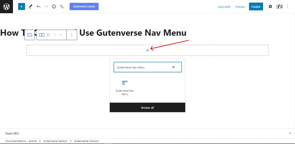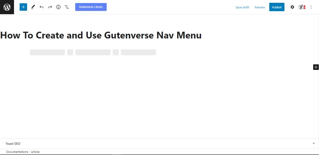 Go to your post, click on the Plus Icon, then type “Gutenverse Nav Menu”.
