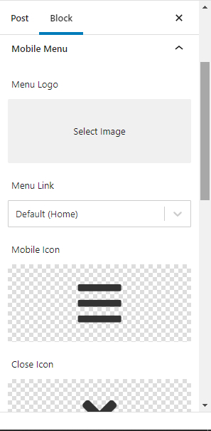 Then, in the Mobile menu section, you can set icons, images, etc. Which will appear on the responsive mobile.