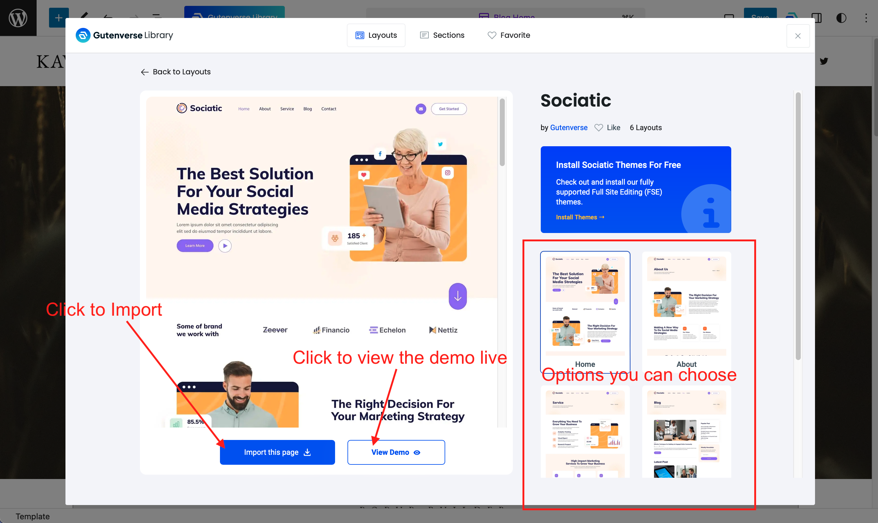 There are many options of layouts, choose a layout that you would like to import.