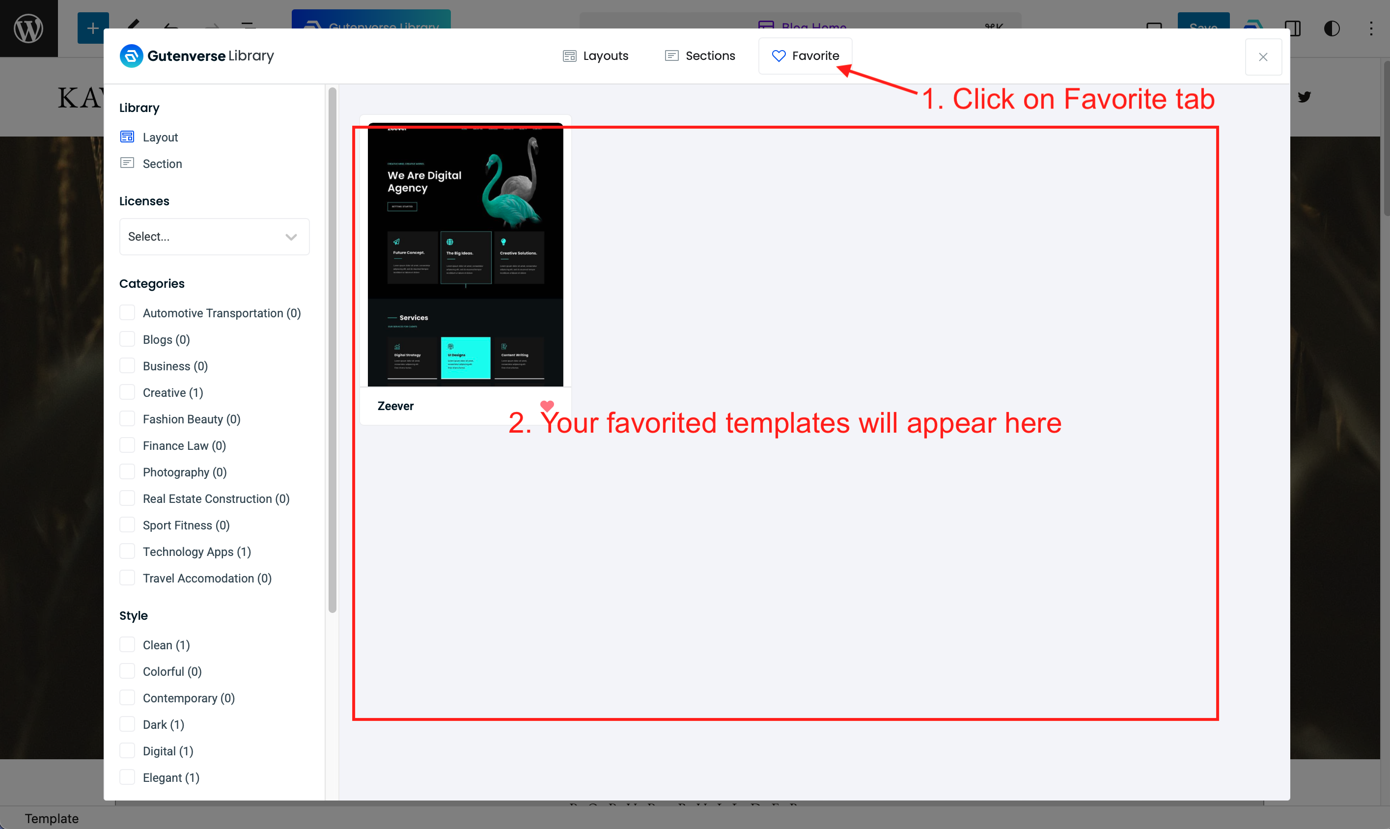 Inside the editor, click the Gutenverse Library button and a popup will appear.