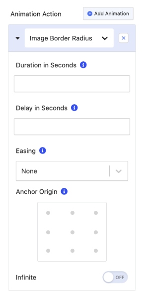 After selecting Image Border Radius, you can set the Duration, Delay, Easing and Anchor for this animation.
