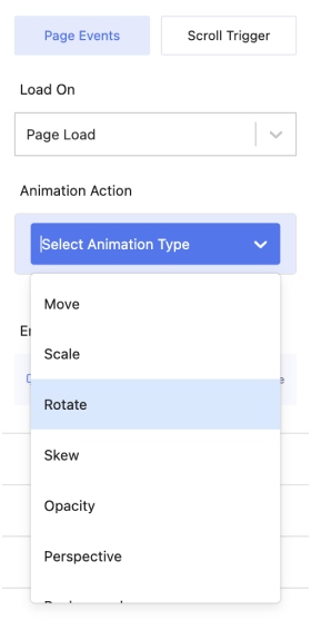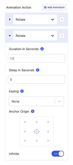 After setting Load On, select Animation Type -> Rotate. To create this infinite animation, you need to choose Two Animation Rotate to make the animation run more smoothly. The first animation is to set the start to end, and the second animation is to set from end to start.