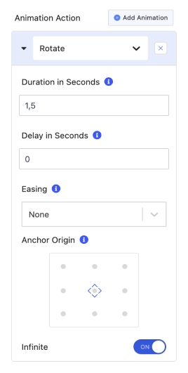 Add a dynamic touch to your website with Infinite Rotate Animation. These continuous, non-stop rotations bring elements to life, adding motion and visual interest to your design. Perfect for creating eye-catching effects, drawing attention, and adding a playful, engaging vibe to your site.