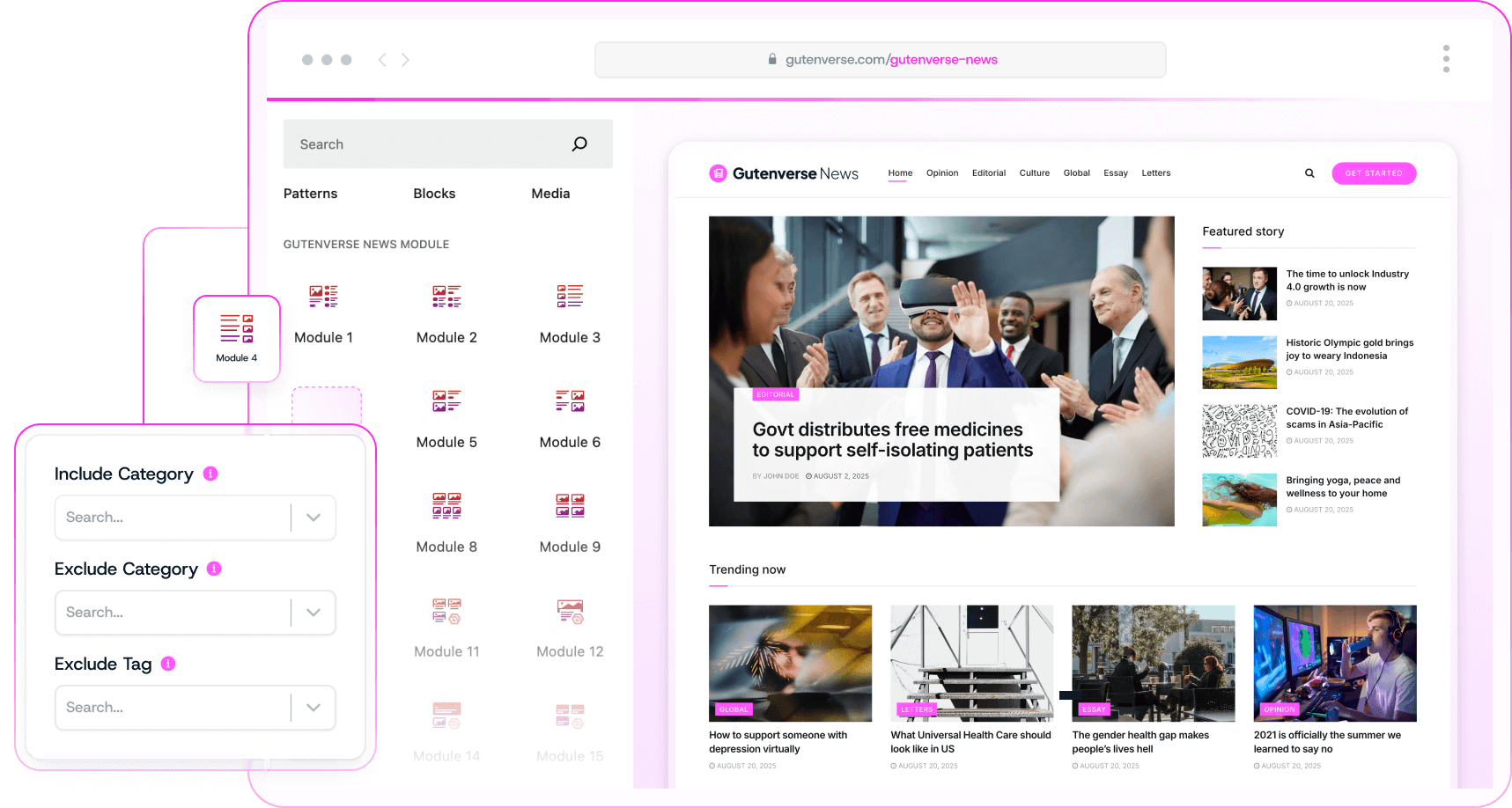 Engaging news sites with 79 flexible, creative, and customizable blocks.