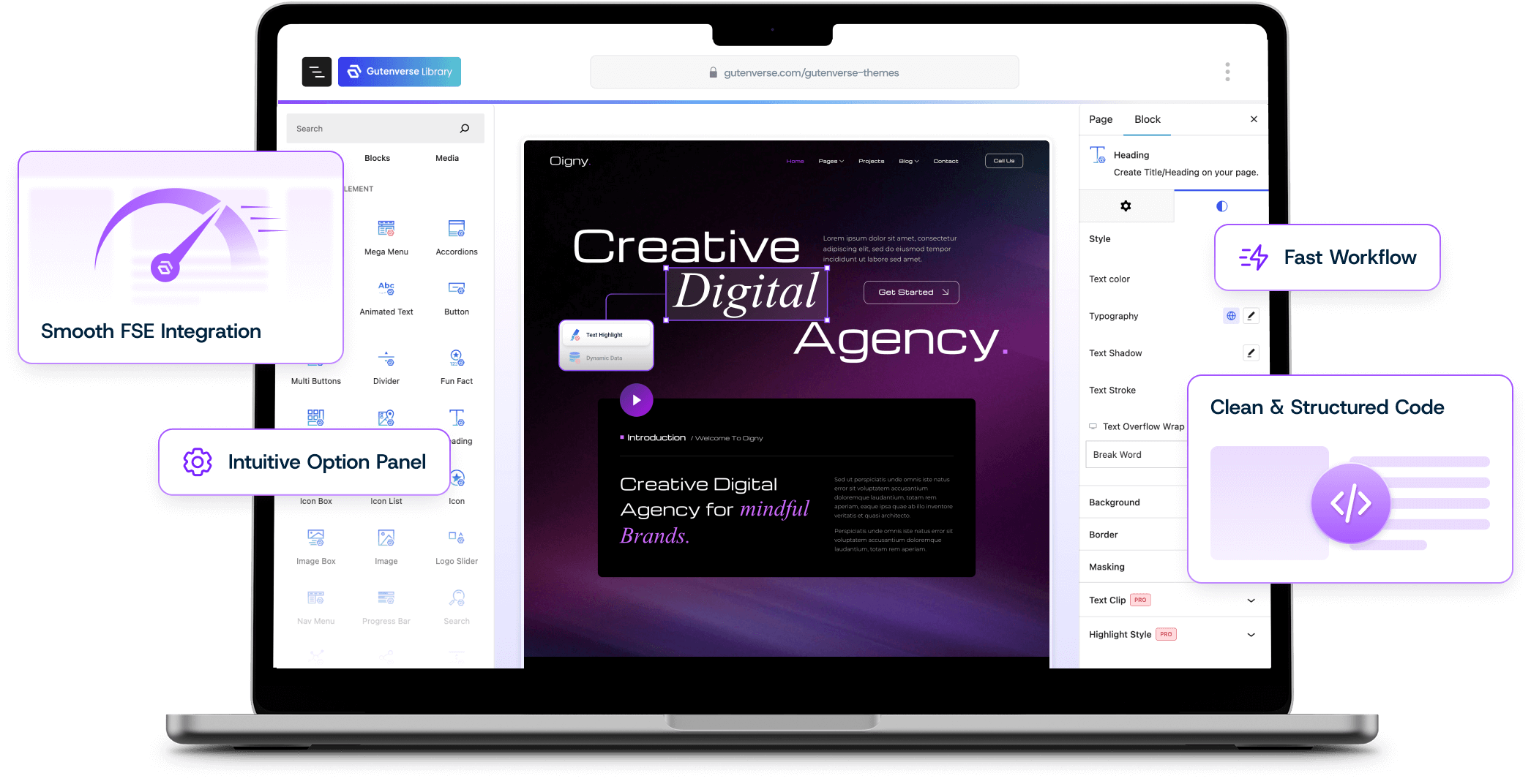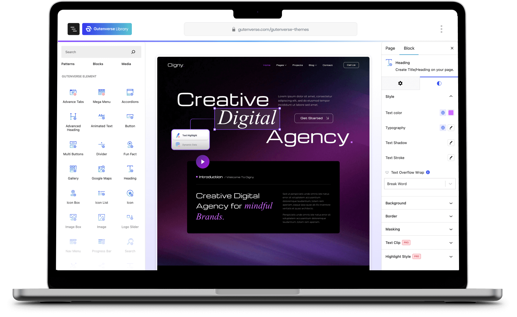 Take full control with global styles, responsive layouts, and powerful text effects for modern websites.