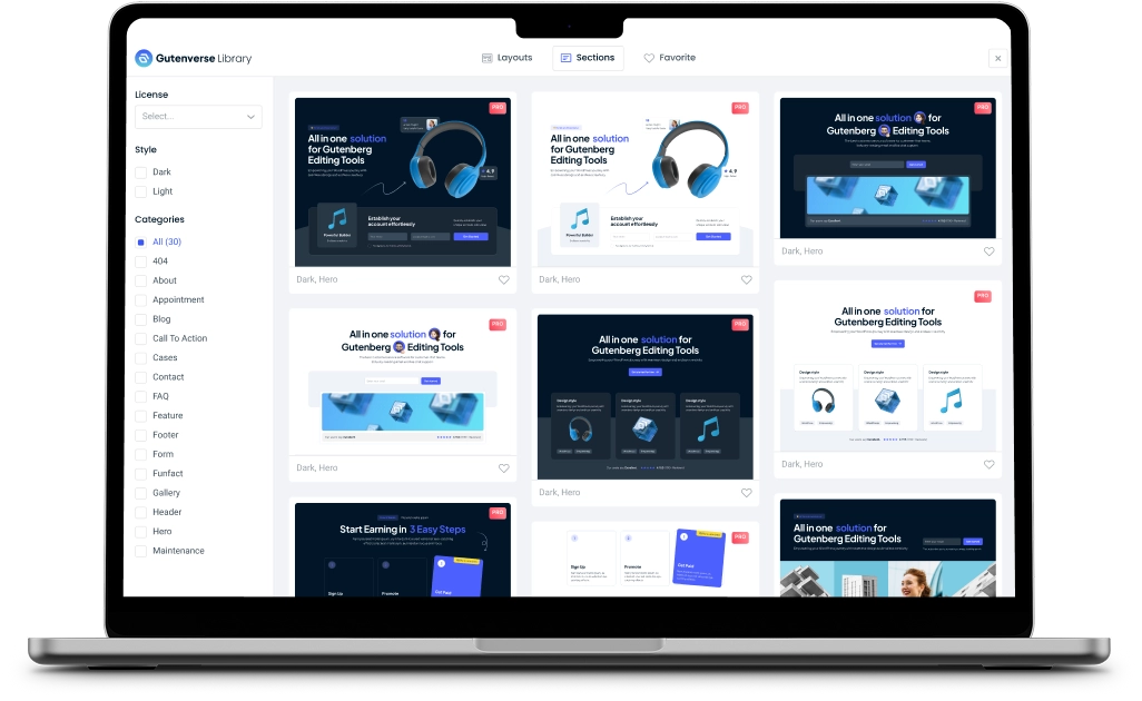 A complete collection of professional templates and layouts, fully categorized and styled to fit your design.