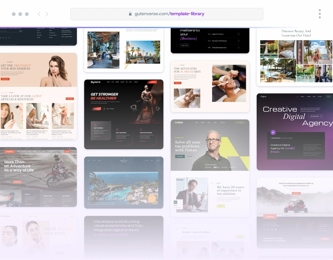 Launch pages with modern, sleek, and responsive layouts. Business, Portfolio, and Blog categories follow a clean structure to showcase content beautifully.