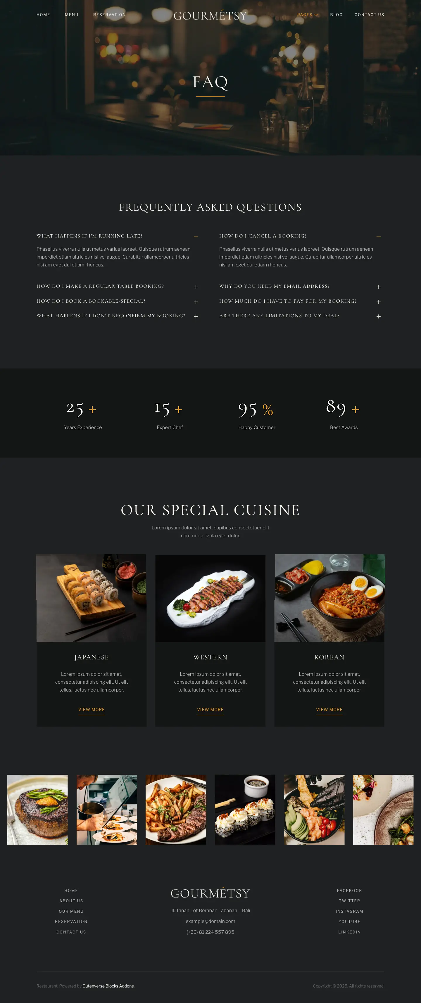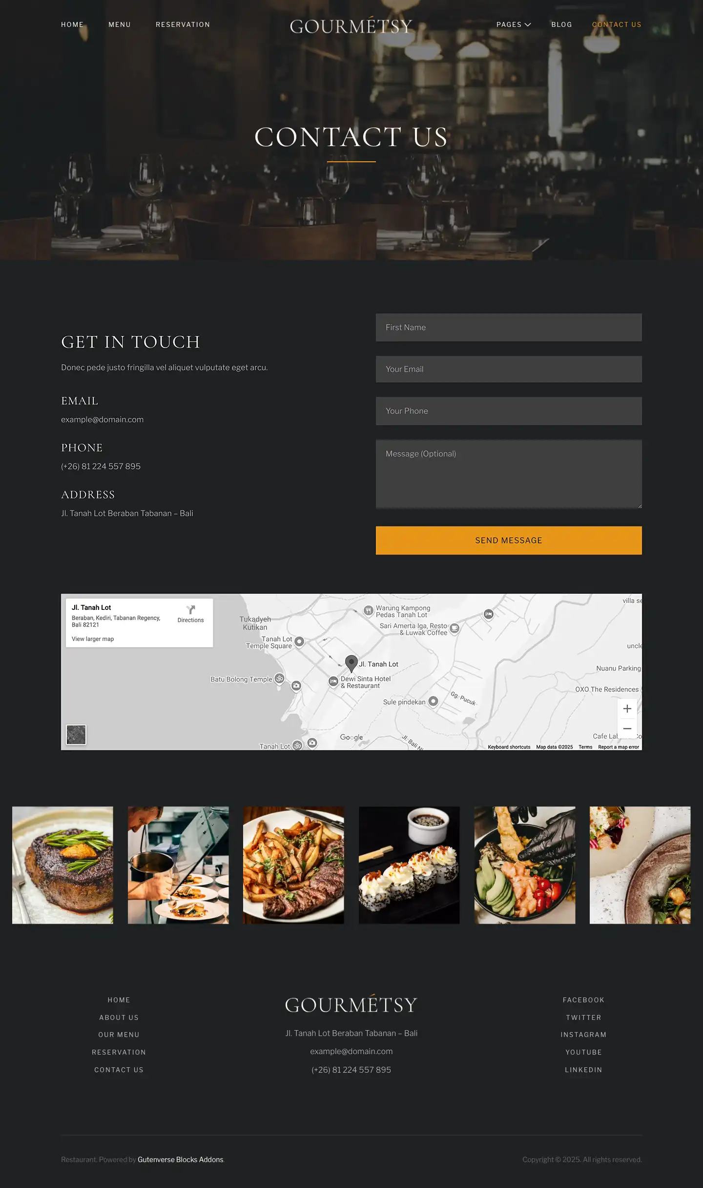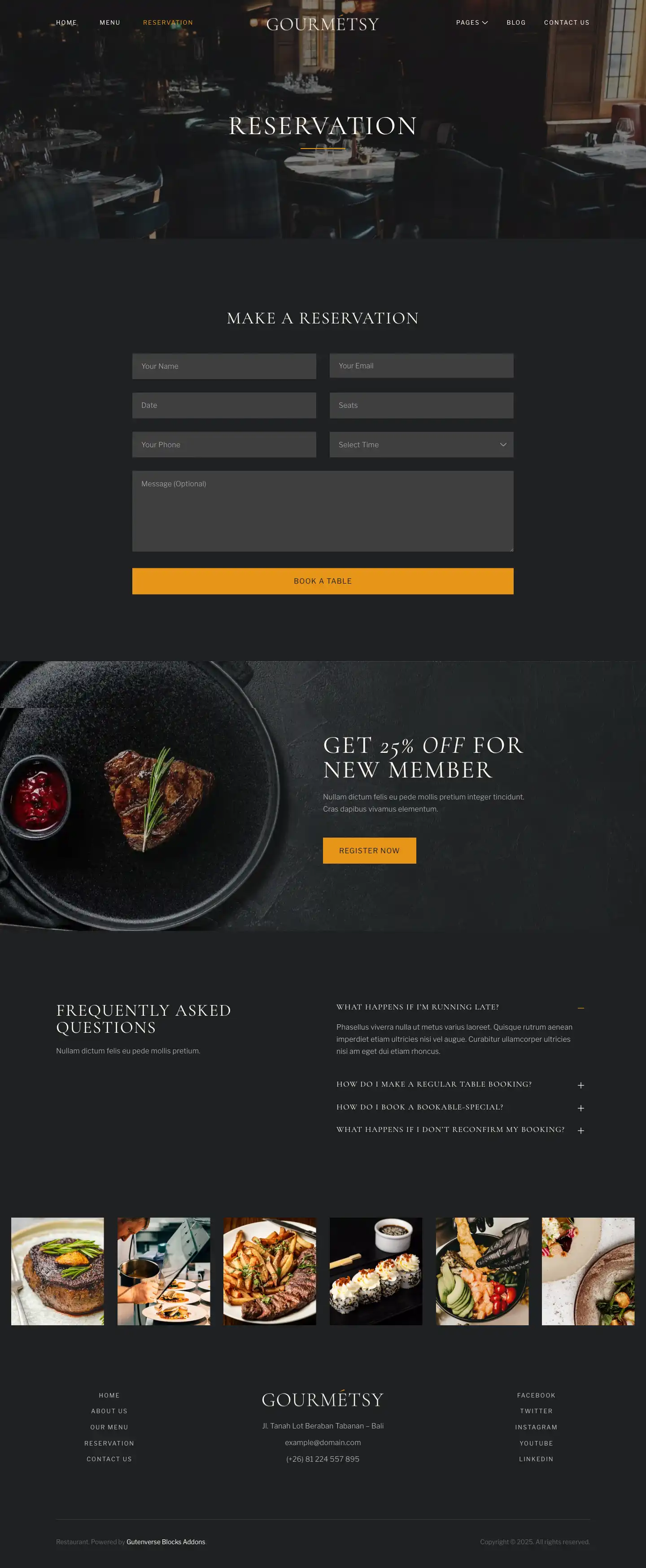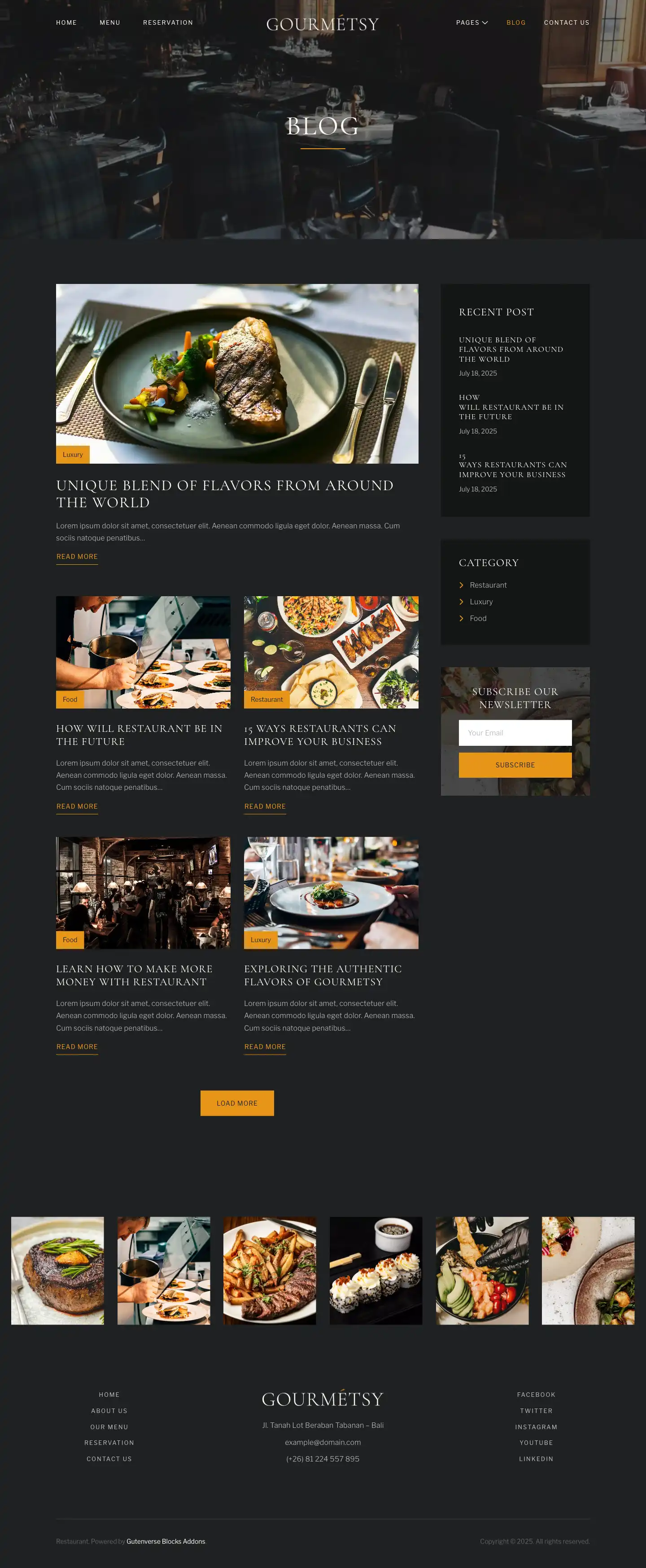Gourmetsy delivers a sophisticated and elegant design, perfect for creating refined websites for luxury dining establishments, modern restaurants, cafes, bars, and other culinary ventures. Ideal for showcasing exquisite menus, highlighting chef expertise, and attracting discerning guests, Gourmetsy helps you present your brand with taste and style while making it effortless for customers to discover and book your dining experiences.