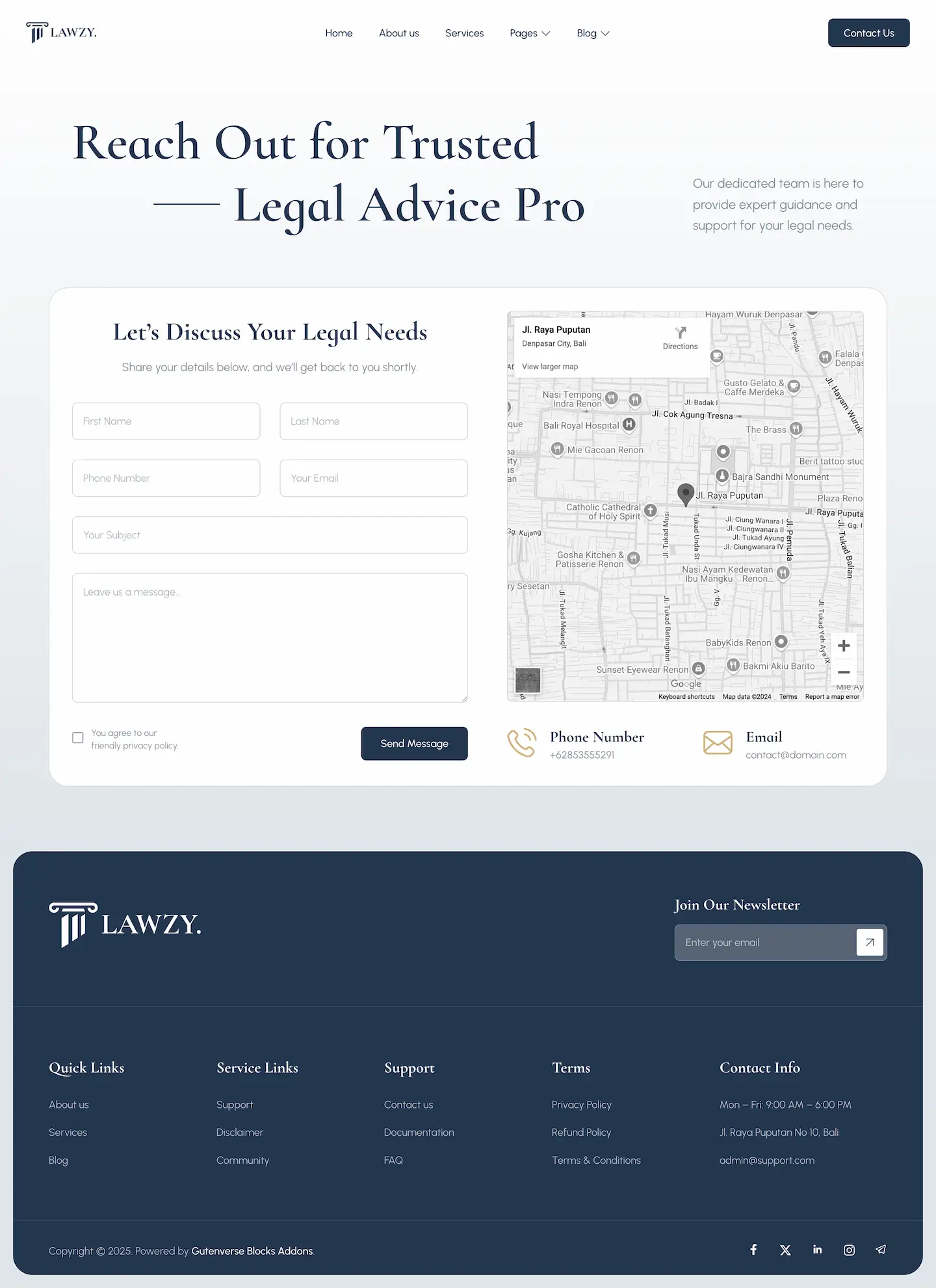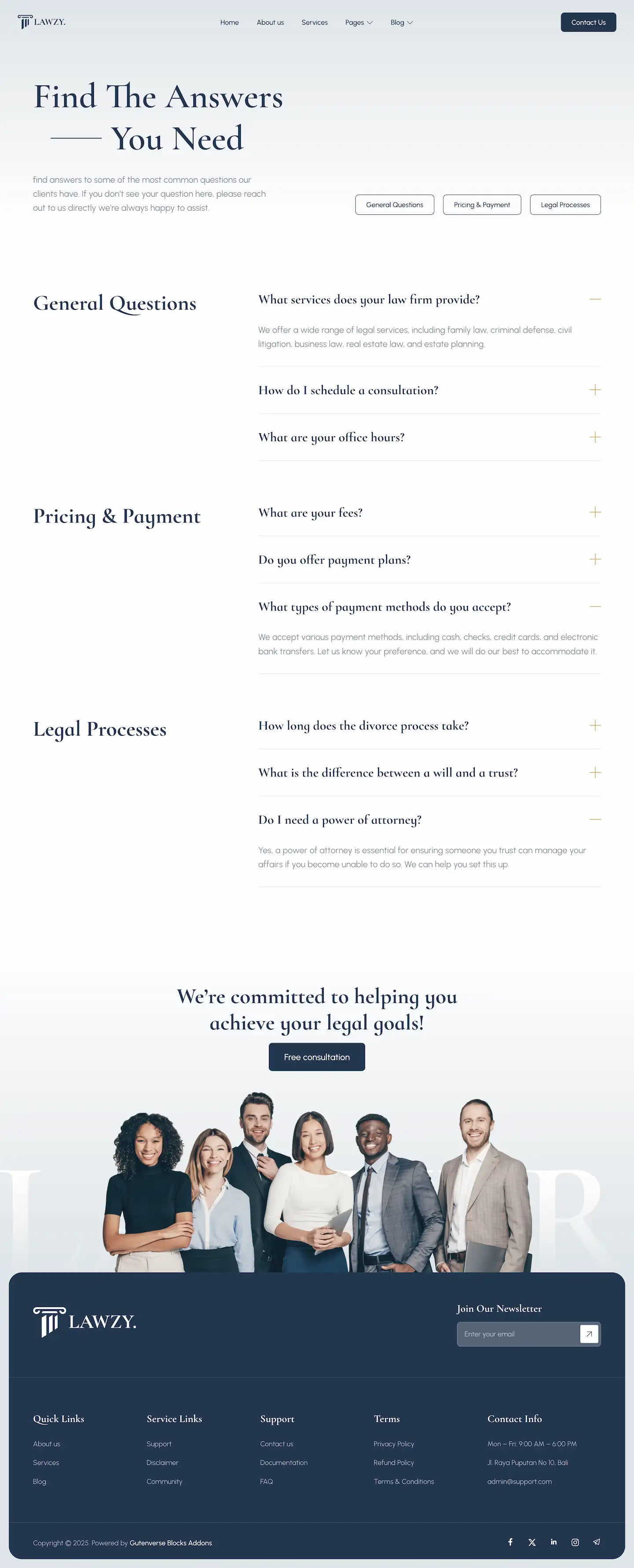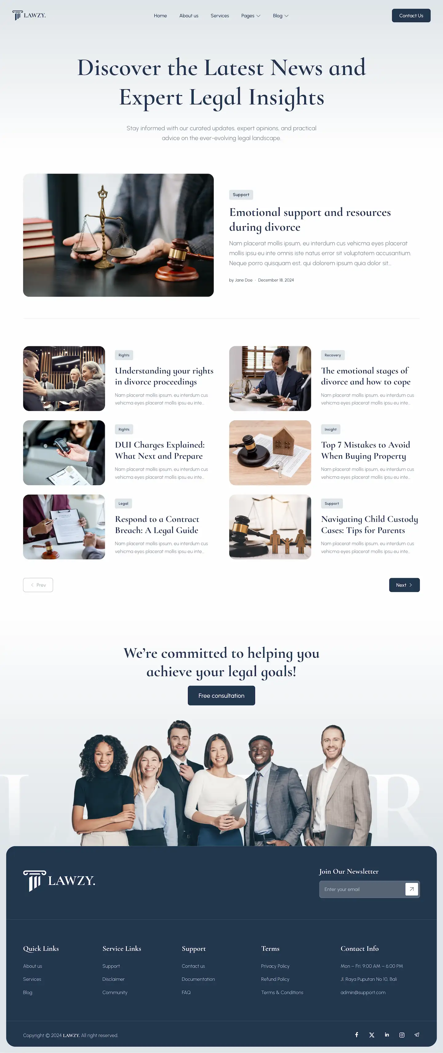 Lawzy offers a sleek and professional design perfect for creating websites for Law Firms, Legal Consultants, Attorneys, Advocates, Notaries, and other legal services. With its modern layout, Lawzy helps you build a credible online presence that inspires trust and reflects your legal expertise.