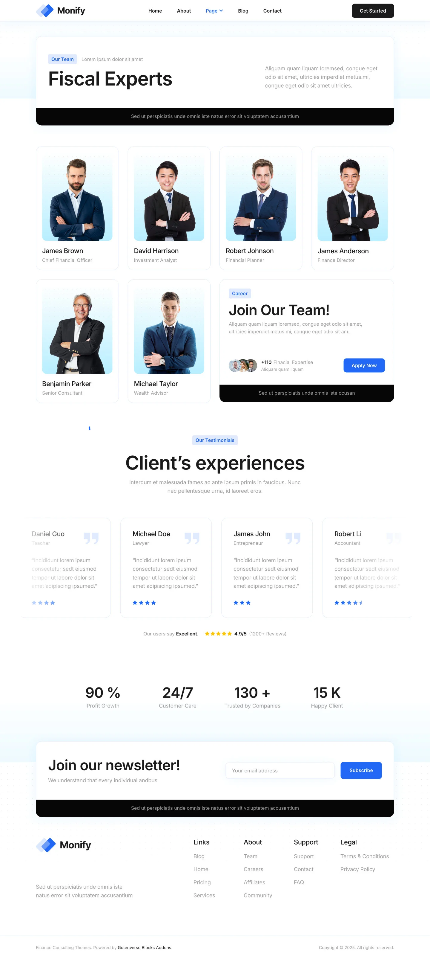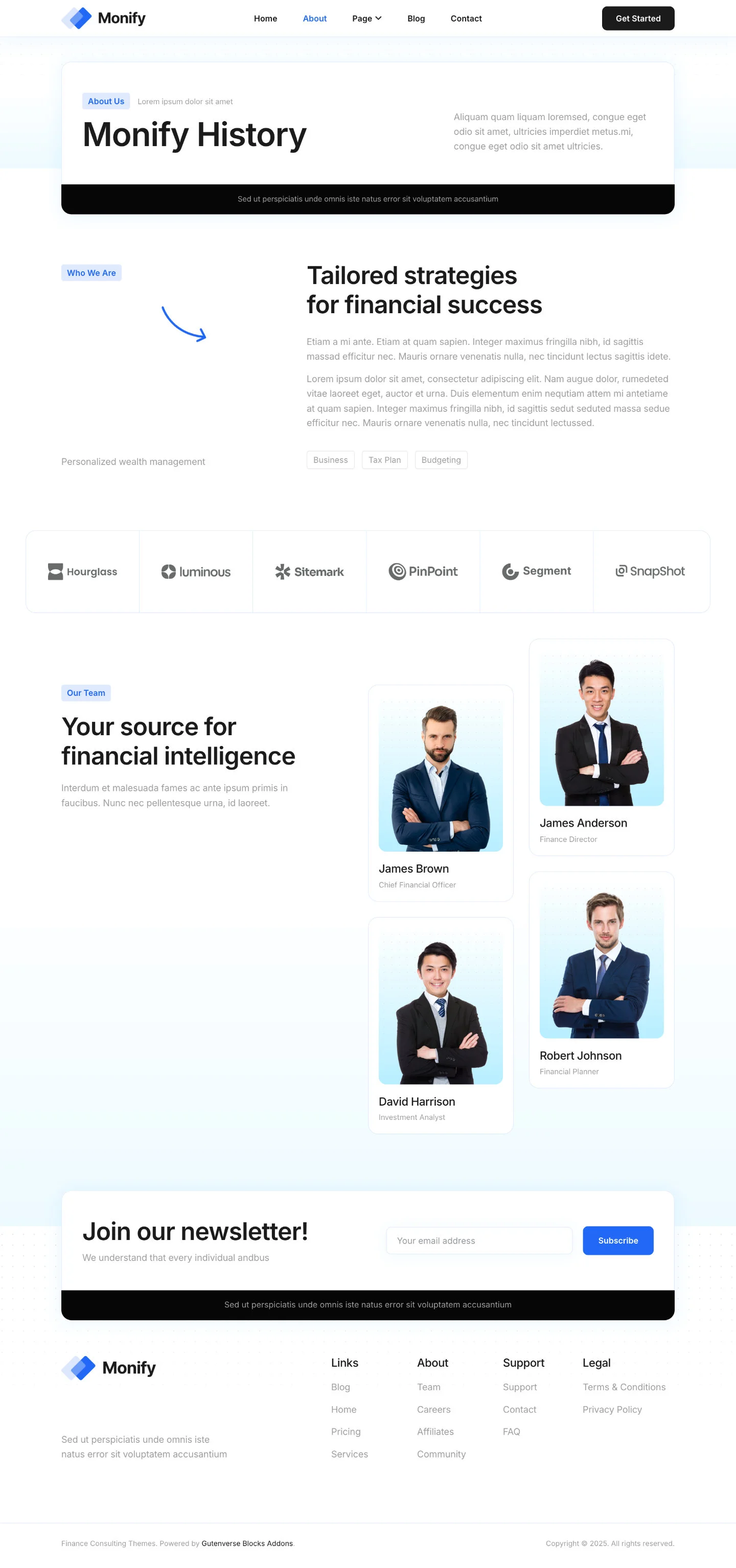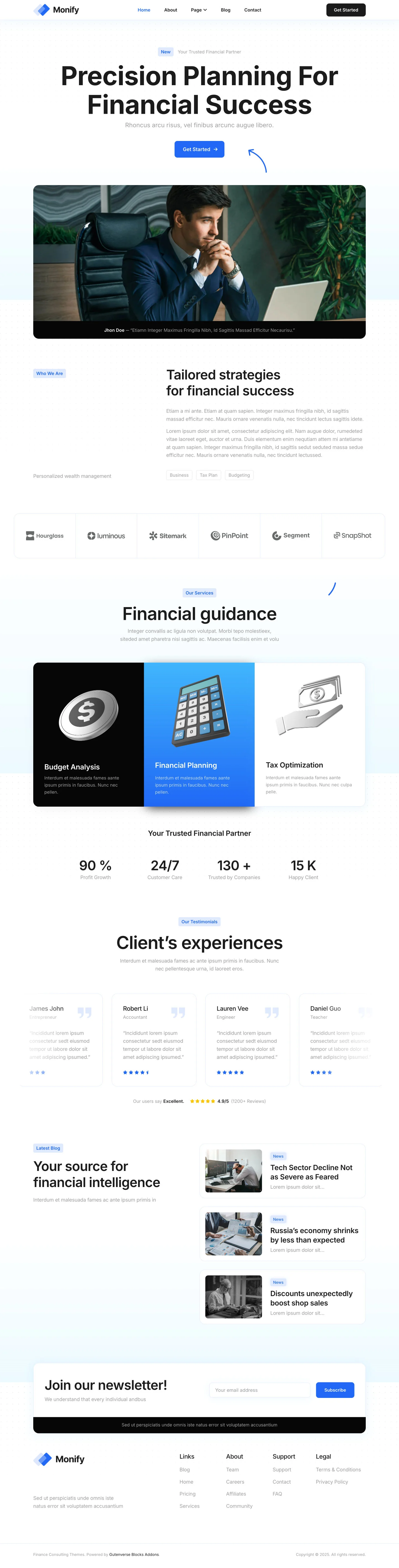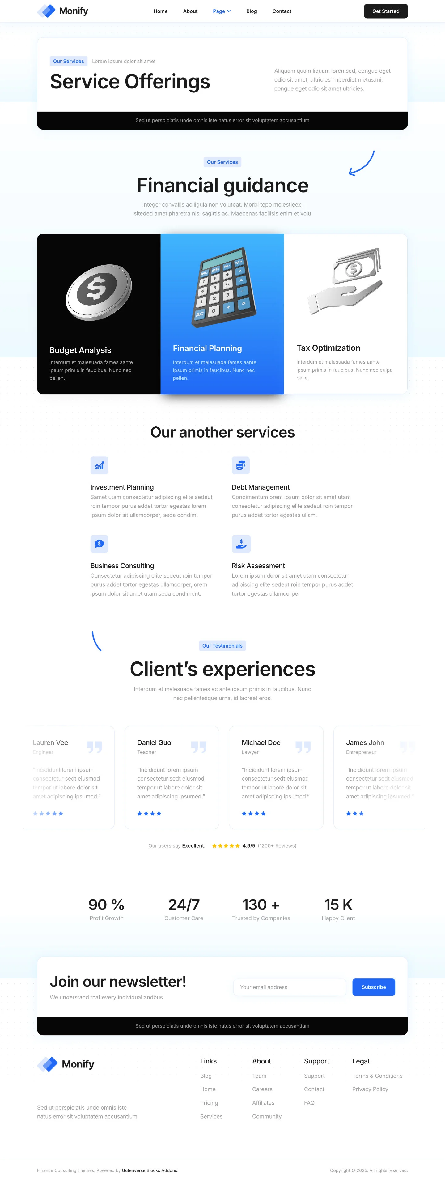 Monify delivers a sleek and modern design, perfect for financial partners, consultants, and corporate businesses. With advanced animations and a fully responsive layout, it creates a polished, professional experience that builds trust and engages clients across all devices.
