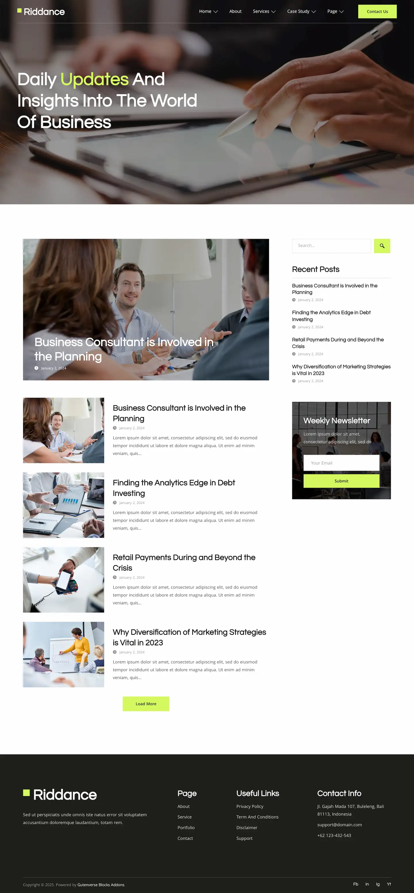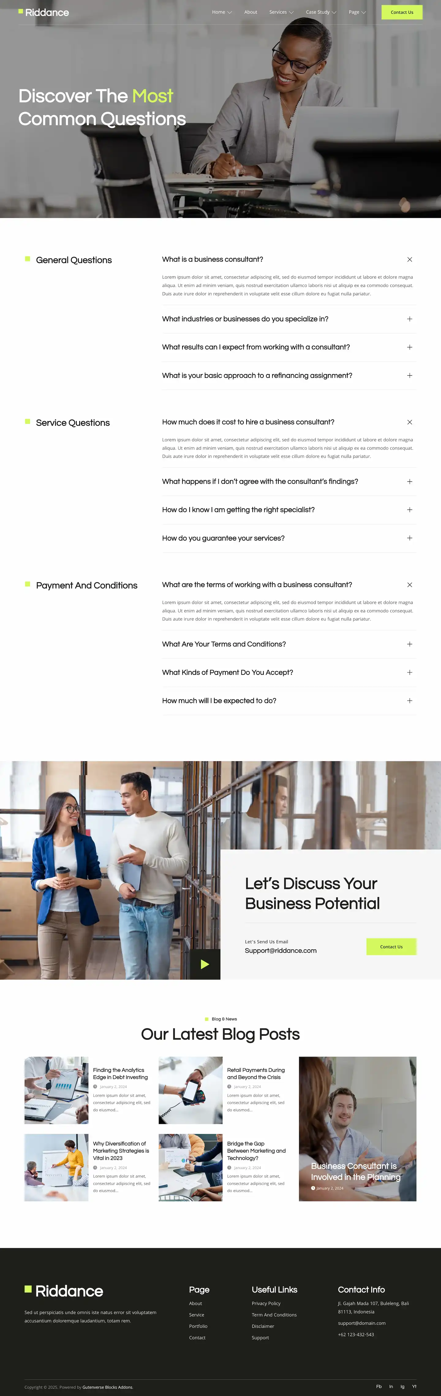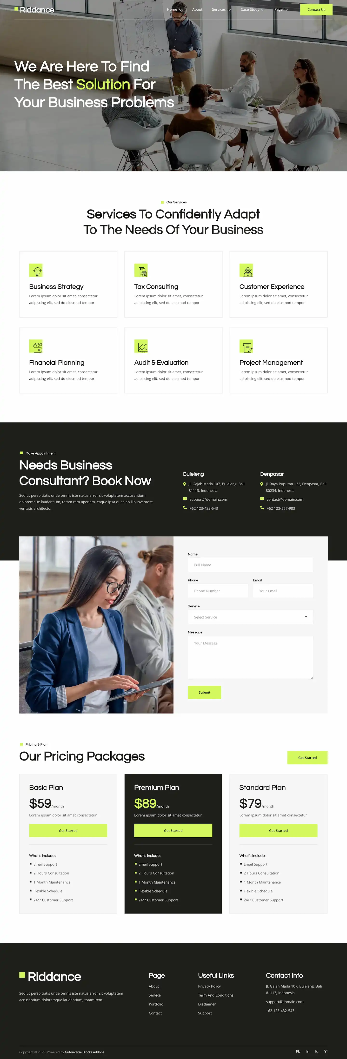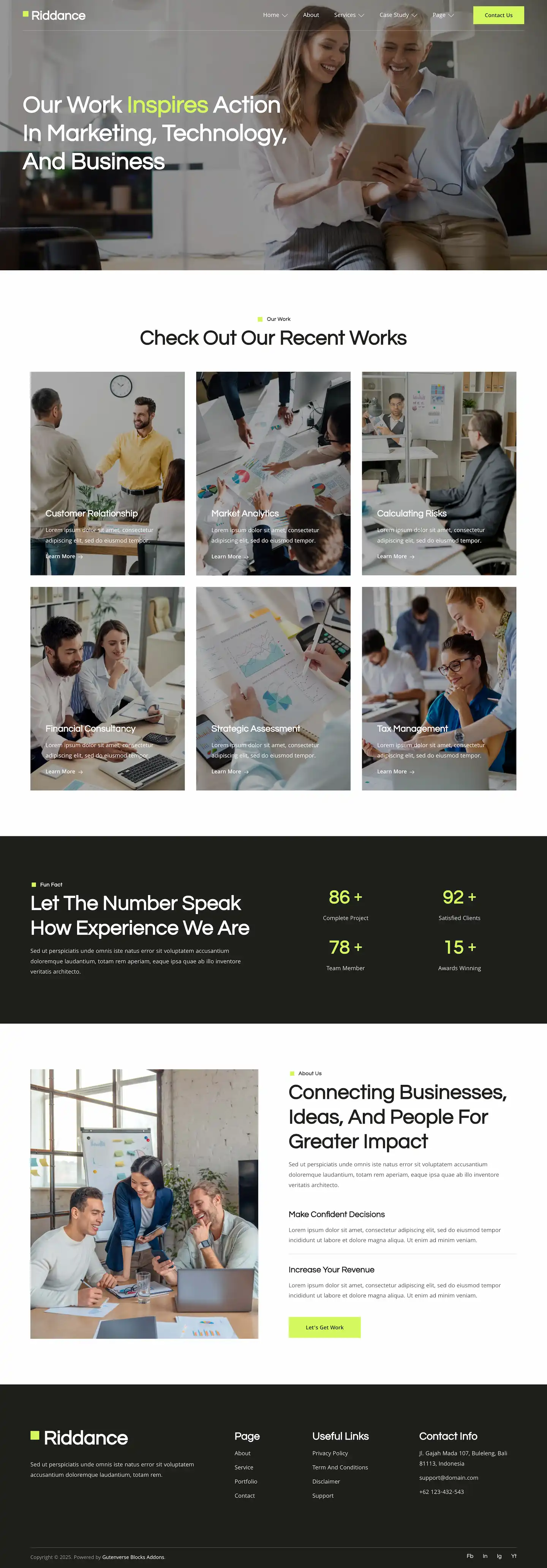 Riddance offers a clean and modern design, perfect for building professional websites for consulting and business services. Ideal for consultants, financial advisors, corporate firms, accountants, insurance brokers, and digital agencies. Riddance helps you showcase your expertise, build trust, and grow your client base with confidence.