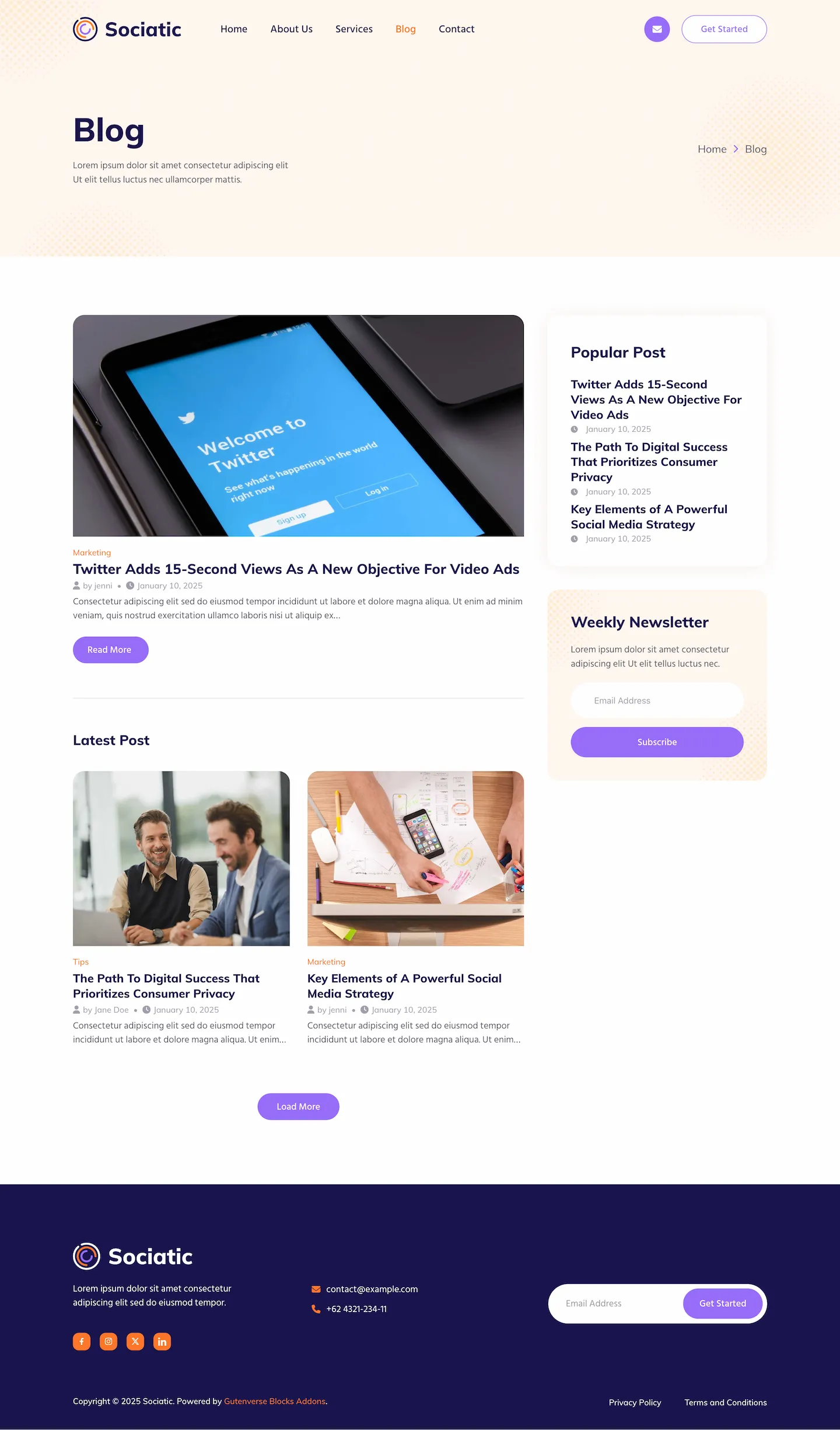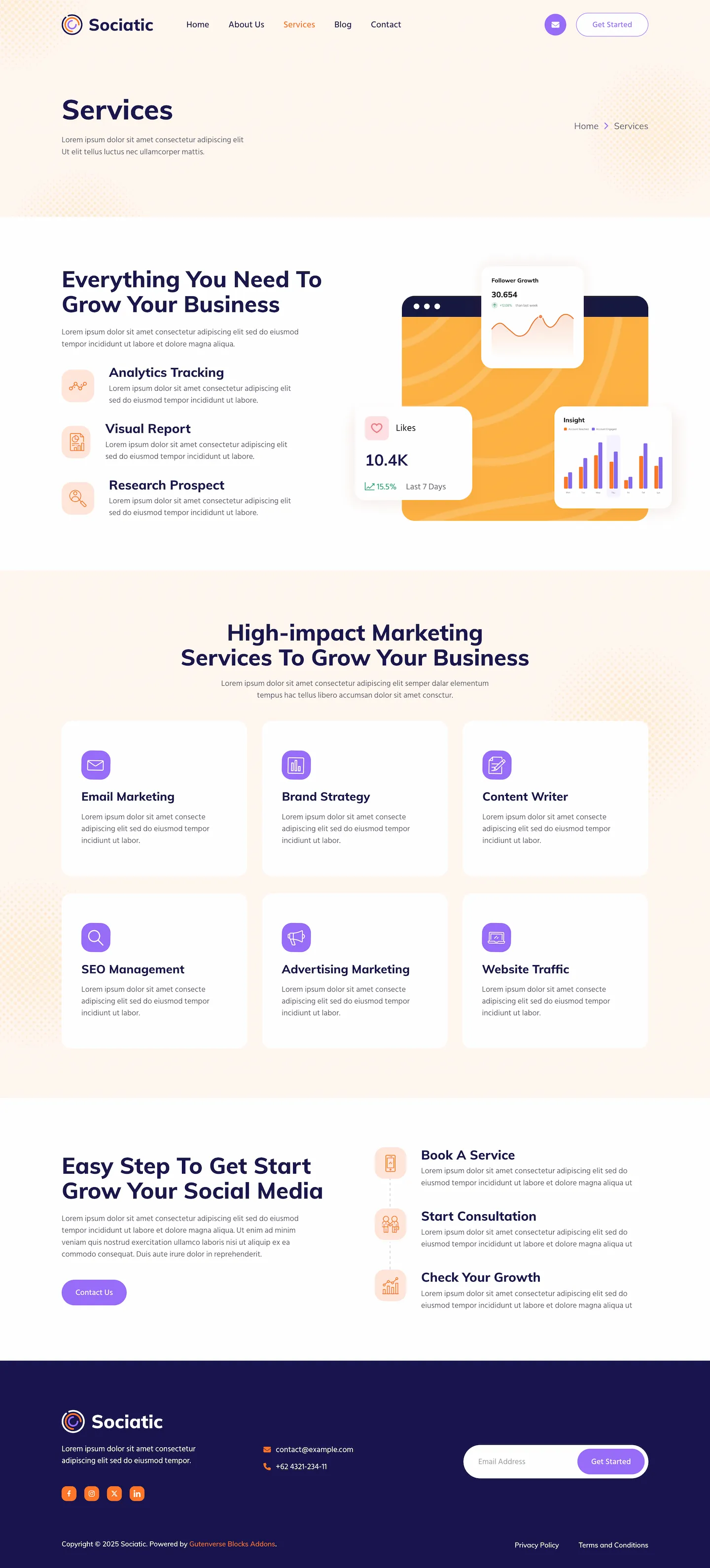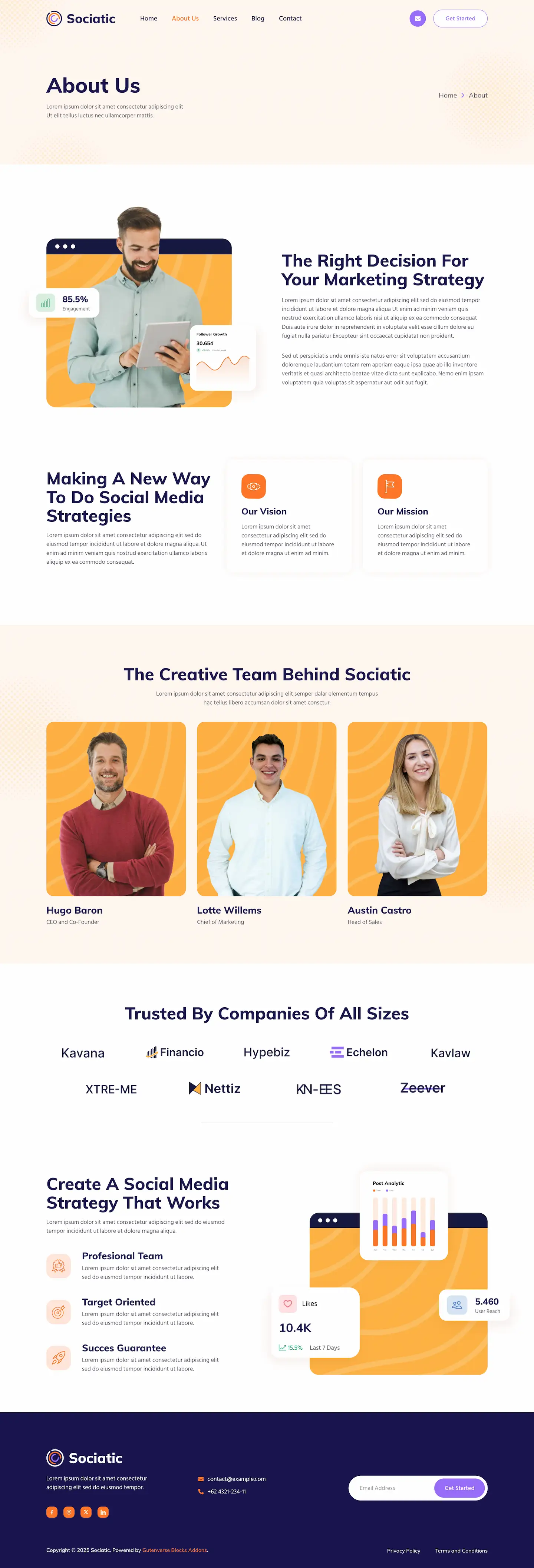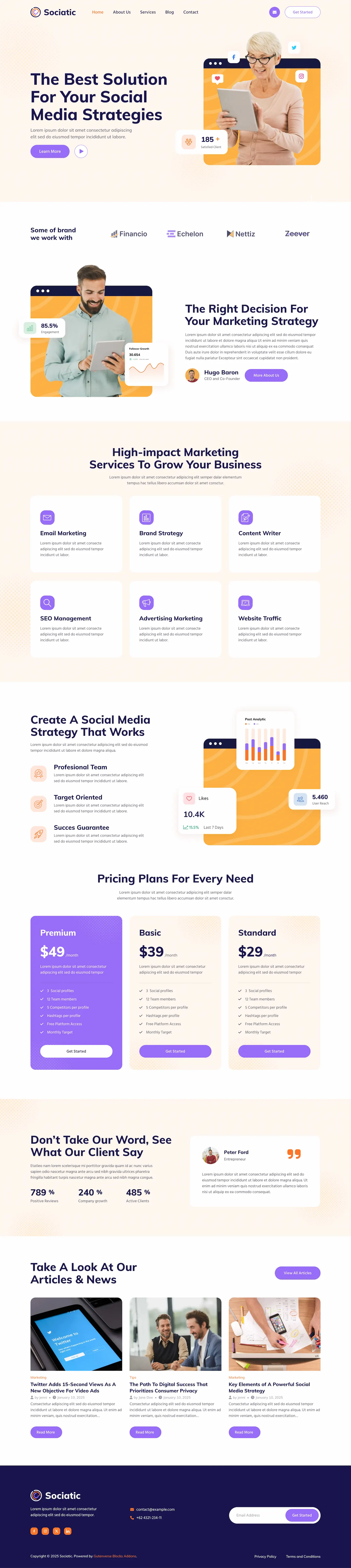 Sociatic brings a sleek and modern design, perfect for building impactful websites for social media agencies and digital marketing professionals. Ideal for content creators, ad specialists, branding teams, and online strategists. Sociatic helps you showcase your services, grow your audience, and make a lasting impression with a strong, results driven online presence.