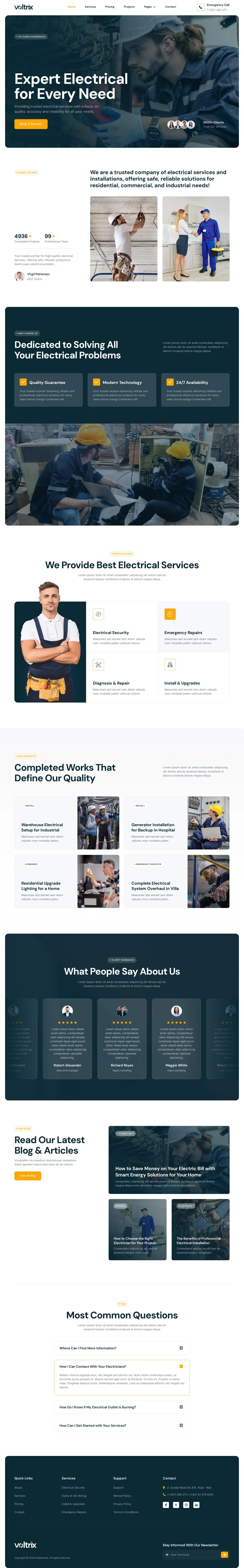 Voltrix offers a powerful solution with a modern design, perfect for creating functional websites for Electrical Installation, Maintenance, and related services. Voltrix is the ideal choice for building a professional, reliable website that showcases your expertise and builds trust with clients.
