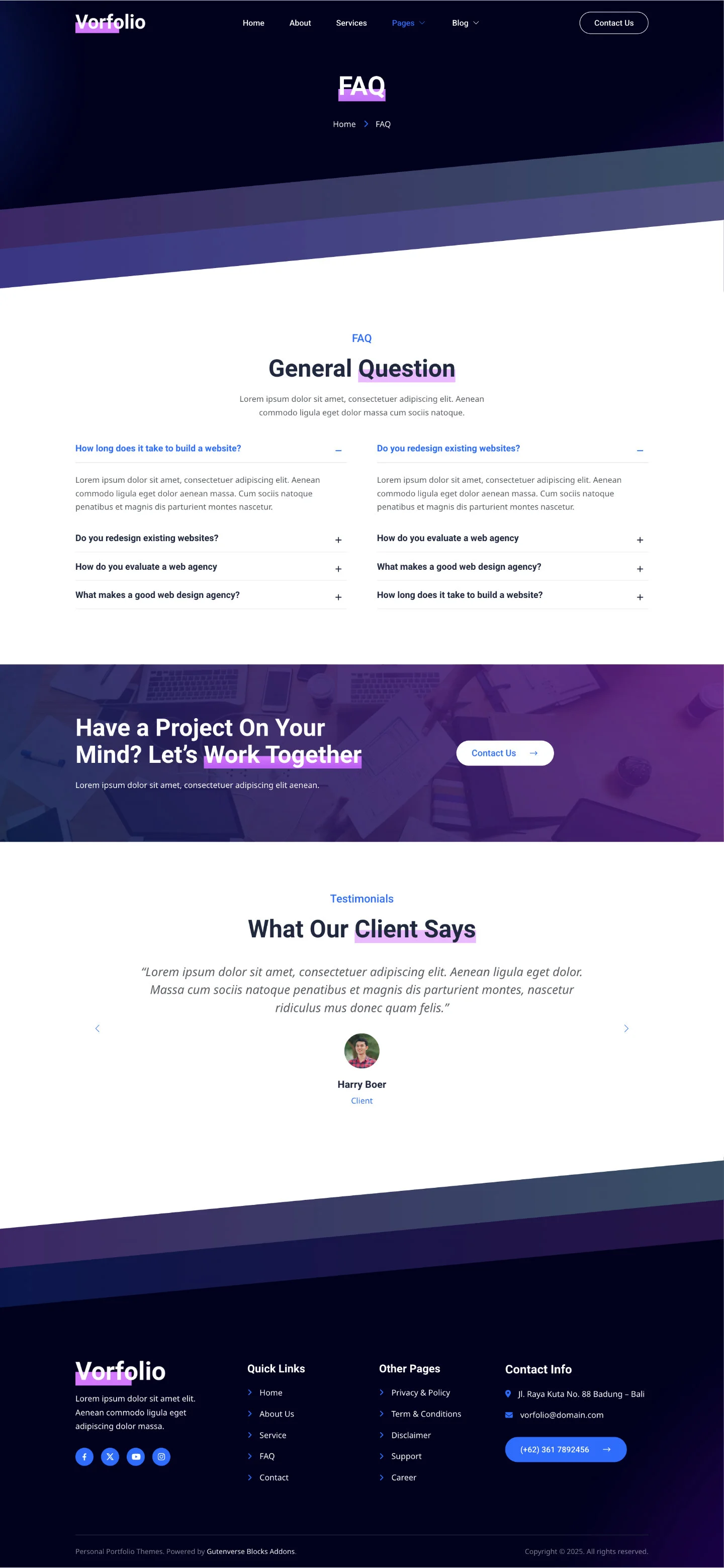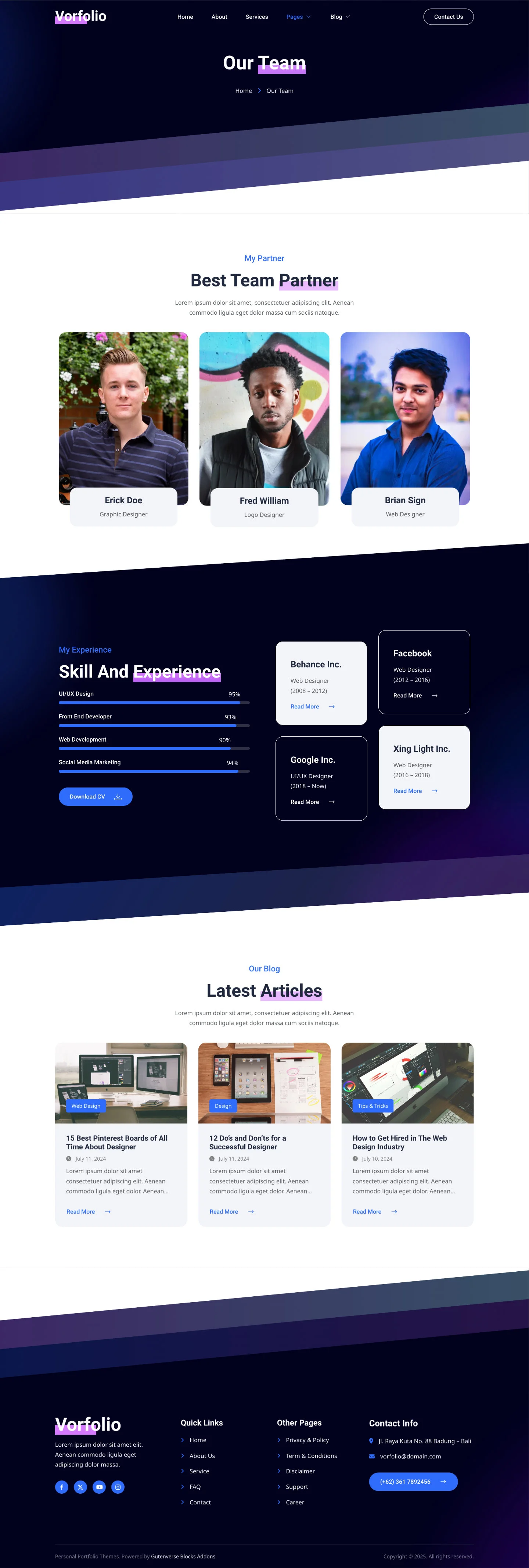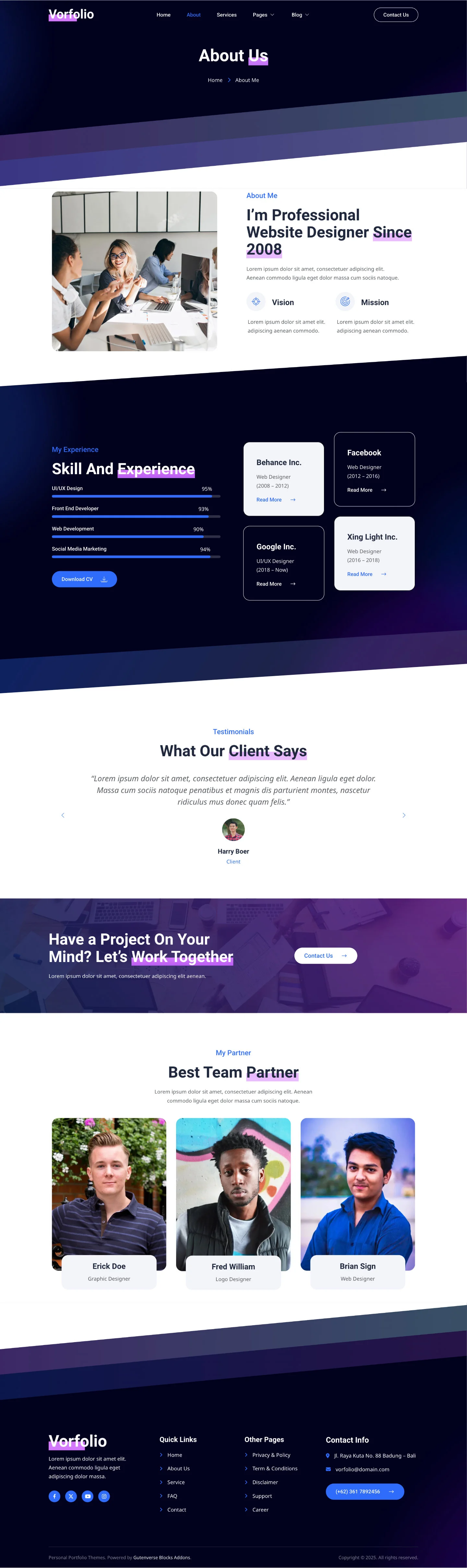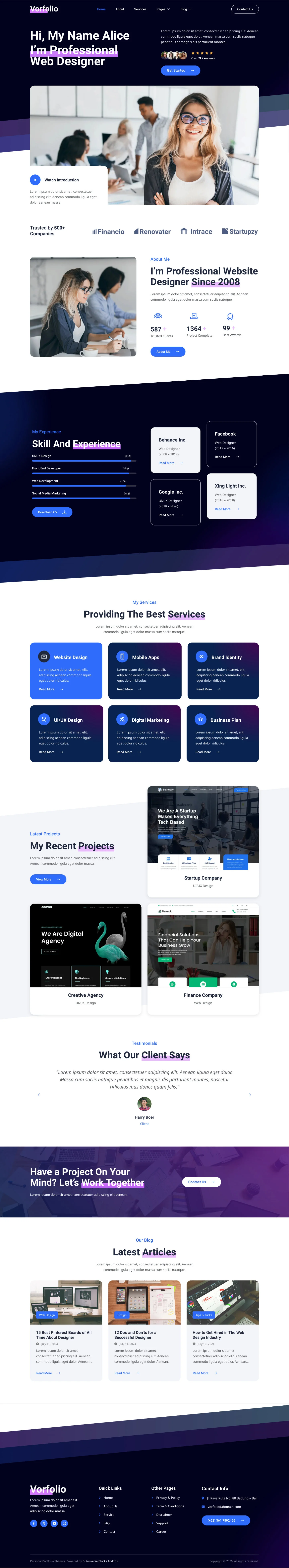 Vorfolio delivers a sleek and modern design, perfect for creative professionals, freelancers, and digital artists. Its clean, responsive layout showcases your portfolio beautifully on any device, helping you make a strong impression and stand out in your field.