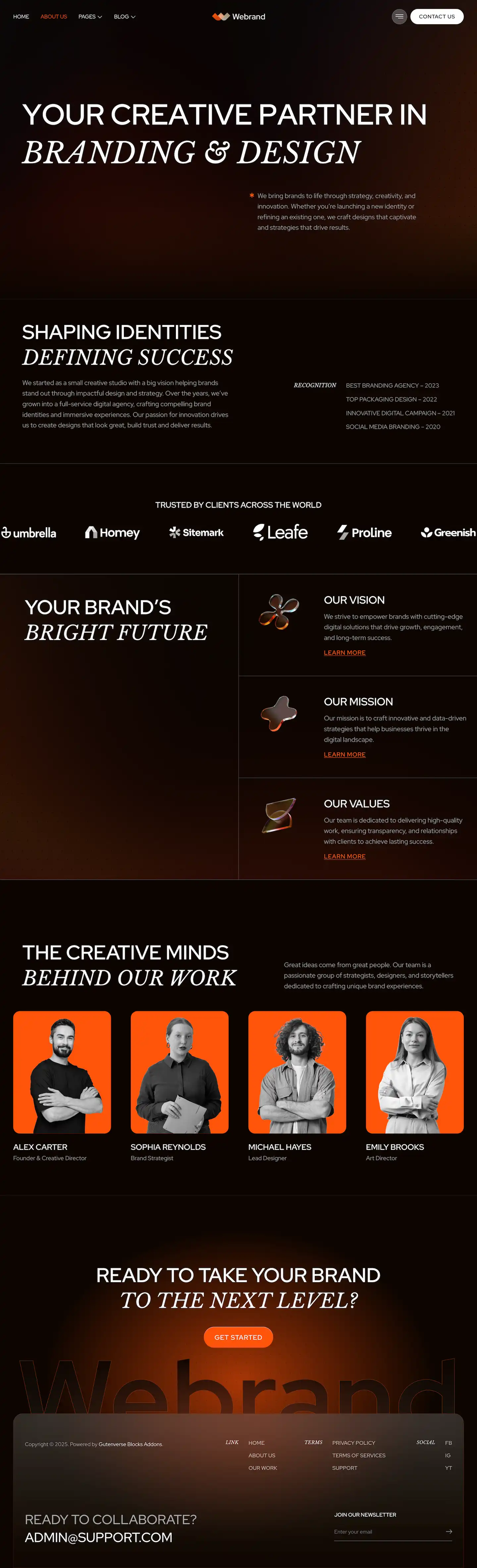 Webrand delivers a bold and modern design, perfect for branding agencies, creative studios, and marketing professionals. Its striking visuals and confident style help you showcase your creative strategies, highlight your portfolio, and build lasting client trust. Whether launching a new brand or redefining an existing one, Webrand transforms ideas into powerful digital experiences that inspire and drive results.